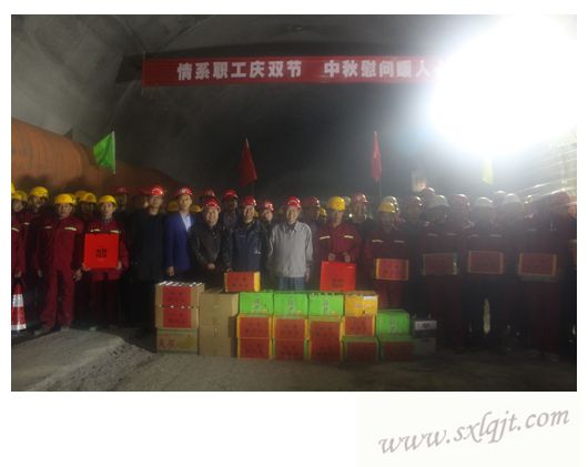 10月4日,程道虎总经理冒雨来到地处秦岭腹地的水阳(柞水-山阳)高速公路项目工地,为一线干部员工送来月饼、饮料等慰问品,和大家一起欢度中秋佳节。在10标西钟岭隧道施工现场,项目负责人杜澎涛介绍了项目进展和管理情况,程总经理做了热情讲话,他表示,项目全体施工和管理人员放弃节日休息和与家人的团聚,坚守工地、辛勤工作、无私奉献,集团公司向大家表示衷心感谢和亲切慰问;要求项目部要坚持“五化”标准,大力发扬路桥精神,保持良好的势头,继续做好项目后续各项工作,为集团公司争光、为交通行业争光;充分利用当前的大好机遇,建好一个项目、打造一个品牌、带好一支队伍;太凤总承包项目品质工程建设得到省厅和社会各界高度评价,希望各单位、项目部积极学习太凤项目的经验,进一步提高在建项目施工质量和管理水平,全面推进品质工程建设。