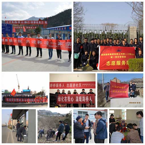 第一项目管理部团支部佩戴志愿者服务红袖章,高举志愿者服务队队旗,来到兰池大道秦汉新城管委会,协助保洁员进行卫生清洁工作。第二项目管理部团员青年们前往镇坪县牛头店镇敬老院,给老人们送去了食品和米、面、油等生活用品,用实际行动把温暖留在了老人们的心中。第三项目管理部组织开展团员青年座谈会,为当地特殊困难家庭送去了慰问品和困难补助,为贫困儿童捐献书籍和衣物。绿化项目管理部团支部在汉城镇汉江边开展了捡拾垃圾及植树等公益志愿服务,开展志愿服务进社区服务活动。陕甘界至陇县项目部团员青年走进当地孤寡、独居高龄老人家里,陪老人聊天,帮老人打扫卫生,进一步传承中华民族尊老敬老的优良传统。