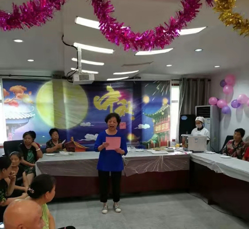 下午2点活动正式开始,康宁社区党支部书记、主任肖瑞芳讲话。中秋是中华民族重要的传统节日,也是一个团圆喜庆的日子,大家欢聚一堂,通过亲手制作传统月饼、诵读中秋诗词、乐器表演等多种形式欢度中秋,共同感受欢乐的节日气氛和浓浓的社区邻里情谊。今年又适逢新中国成立70周年,全国各地的各族人民都在用不同的方式向祖国母亲献上祝福,我们也用今天这样和谐欢乐的庆祝活动,献上我们的祝福,祝愿我们伟大的祖国繁荣昌盛,富强美好。